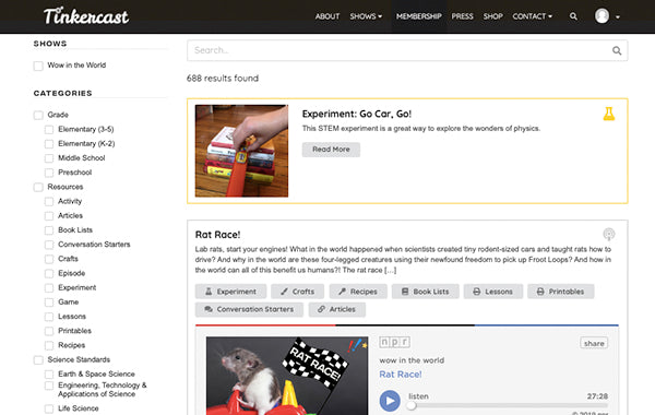 Wow in the World is a free audio podcast with a complementary library of hands-on science and STEAM activities.